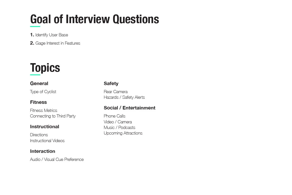 The primary challenge was designing a hands free display with voice interaction that does not distract the cyclist or obstruct their view. Once we tackled the basics, our main concerns were: